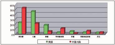 每個國家由于生活習(xí)慣、自然環(huán)境和一些遺傳因素的不同,各種疾病的發(fā)病率也有明顯的區(qū)別。這種區(qū)別就會導(dǎo)致臨床檢查項目的區(qū)別。由于臨床檢查項目的不同,所以臨床使用的設(shè)備也會有一定的差異。圖3所示中國大陸和美國臟器核醫(yī)學(xué)檢查比例有明顯區(qū)別。