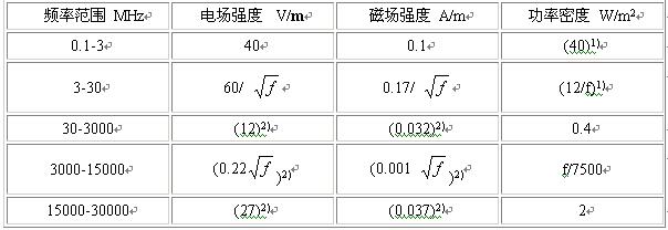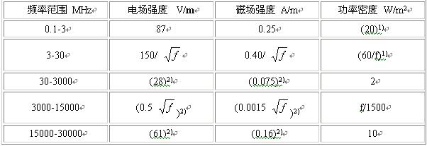 2)供對(duì)照參考,不作為限值;表中f是頻率,單位為MHz;表中數(shù)據(jù)作了取整處理。